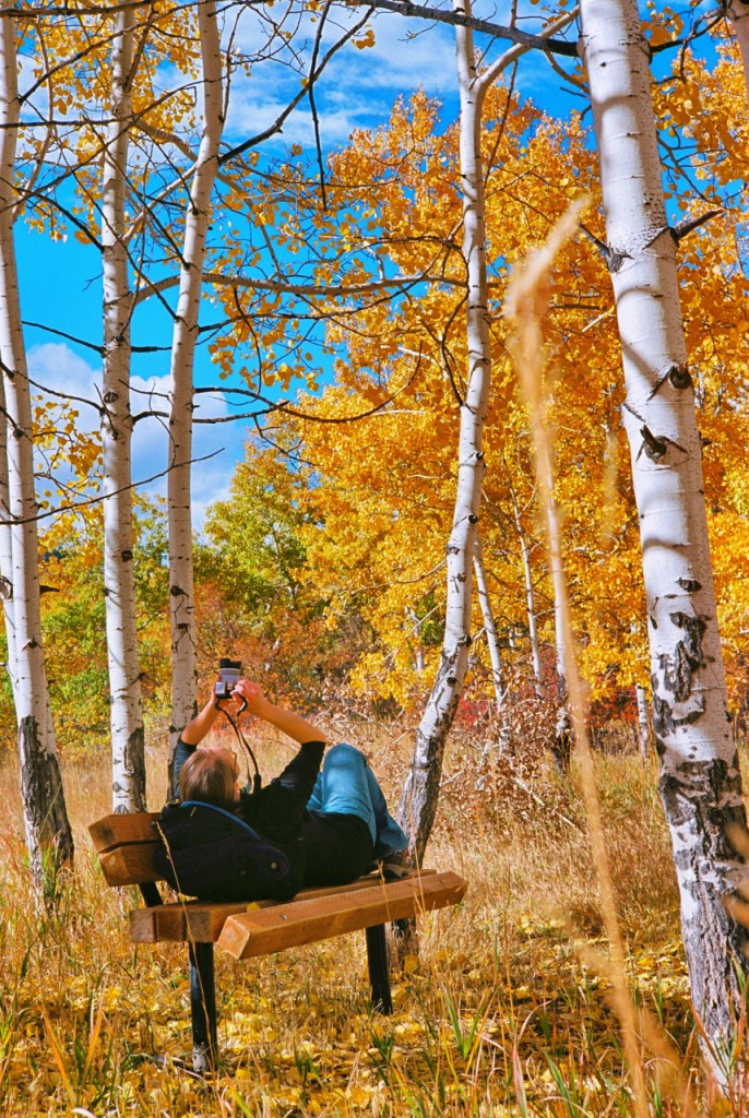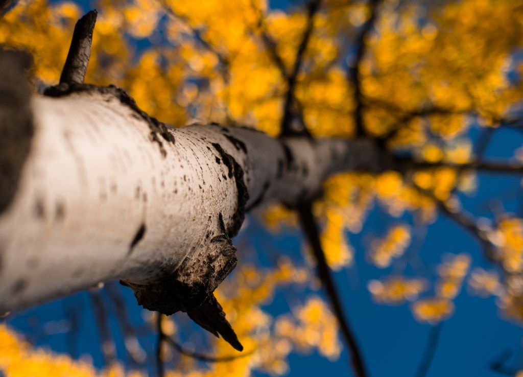 I love the lead images of this post because it is a different perspective than your typical photo describing fall color. Looking up the trunk of an aspen tree is fun and holds the viewer’s attention.